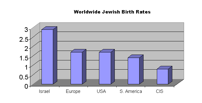 В 1939 году в мире насчитывалось 17 миллионов евреев, а к 1945 году - лишь 11 миллионов. Хотя за 17 лет, прошедших после Катастрофы, еврейское население мира увеличилось на миллион, для его возрастания еще на один миллион потребовалось уже 38 лет. Сухие цифры показывают, как замедлился рост крошечного еврейского населения мира за последние 40 лет. Возрастание рождаемости всего лишь на 0,4% дало бы нам миллионы евреев за следующие 50 лет. Но сейчас мы этого не видим.
