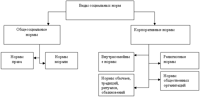 В зависимости от характера регулирования общественных отношений можно выделить, прежде всего, социальные нормы общего действия и социальные нормы корпоративного действий.