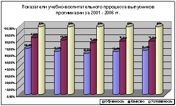 Для решения данных задач МОУ прогимназия разработана и реализуется программа развития учреждения на период с 2005до 2010 года. Результативность выполнения программных задач по реализации учащимися и воспитанниками прогимназии действующих требований государственного образовательного стандарта определяется мониторинговыми исследованиями качества обученности детей, обеспечение психологического благополучия в приобретении детьми психологических знаний, умений и навыков, а так же обеспечением преемственности дошкольного образования, начальной и средней школы через развитие социокультурной основы УВП. Пониманию педагогами теоретических оснований программы (самоценность детства, деятельный подход, концепция развития детских способностей) помогают педсоветы, консультации, тренинги. На педагогических советах, совещаниях при директоре, малых педсоветах и заседаниях кафедр педагоги делились опытом использования инновационных технологий для развития личности детей, опытом исследовательской работы. В текущем году были проведены 3 семинара - практикума для педагогов Ленинского муниципального района: