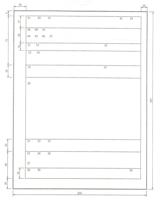 1 — Расположение реквизитов и границы зон на формате А4 углового бланка