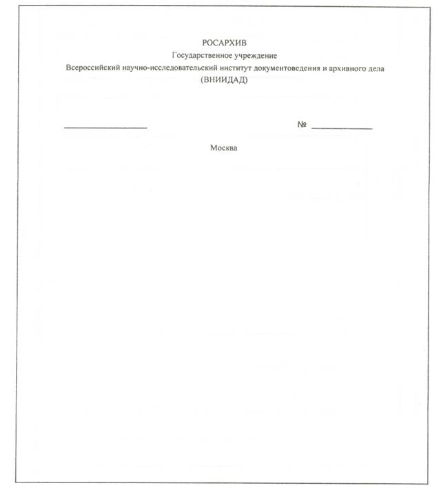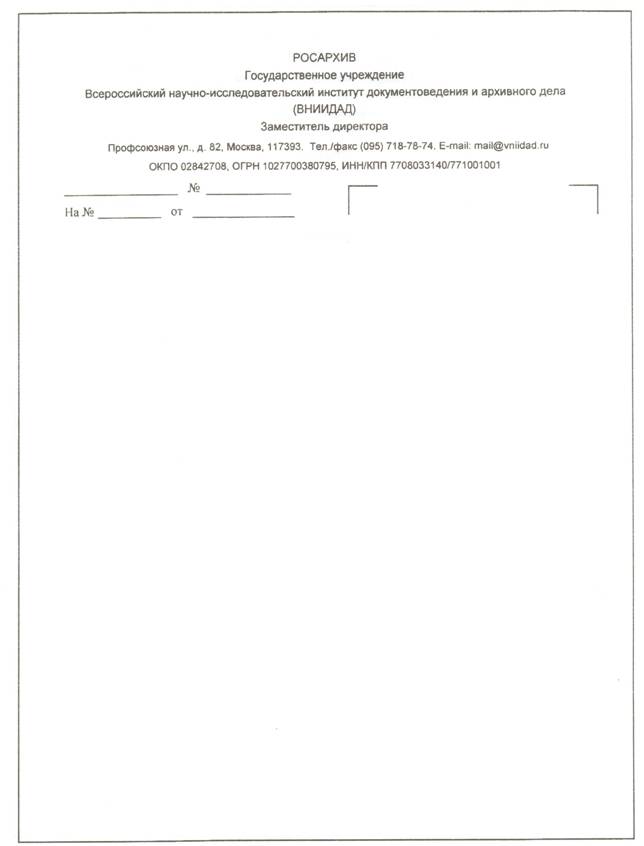 Государственное учреждение Всероссийский научно-исследовательский институт документоведения и архивного дела Профсоюзная ул., д. 82, Москва, 117393