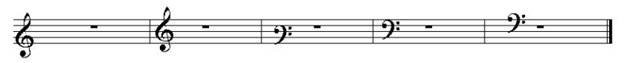 Сопрановый (до1) Меццосопрановый (до1) Альтовый (до1) Теноровый (до1) Баритоновый (до1)
