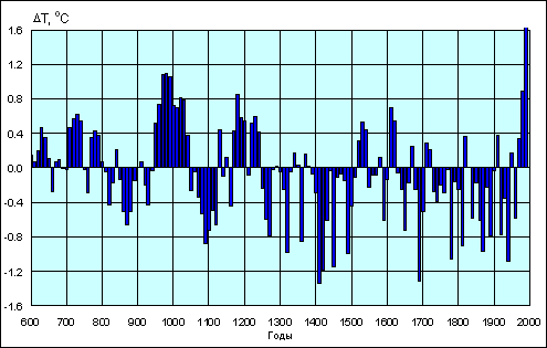 Клименко: Это ошибка. Откуда вы взяли такие представления, я не понимаю. Возможно, вы начитались трудов каких-то экологических организаций. Я вам демонстрировал график (если хотите, покажу еще раз персонально): в течение исторического периода скорости изменения температур бывали очень значительными, значительно превосходящими те, которые достигнуты в течение XX в. Я совершенно решительно протестую против представлений о том, что скорость повышения температур в ближайшие десятилетия может значительно превзойти те, которые наблюдались в климатической истории за последние тысячи лет. Это ошибка.