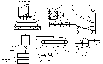 Практическая значимость и реализация результатов работы. Комплексные теоретические и экспериментальные исследования, результаты математического моделирования, а также анализ работы экструзионного оборудования позволили разработать методологические подходы к созданию высокоэффективных технологий получения функциональных экструдированных продуктов с соответствующим аппаратурным оформлением (Пат. РФ № 2 2 2 2262856). Развиты положения по ресурсосбережению, которые реализованы в разработанной схеме линии производства экструдатов заданной пищевой ценности (Пат. РФ № 000).