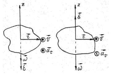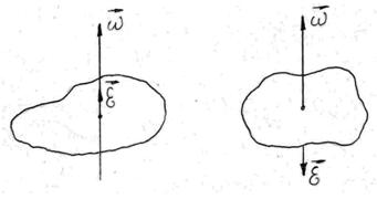 образуют правую тройку векторов, На рис. 8а представлено ускоренное вращение, а на рис. 8б замедленное вращение твердого тела.