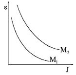 5. На рисунке представлены два графика зависимости углового ускорения от момента инерции при постоянных моментах М внешних сил. Какой из этих моментов больше?