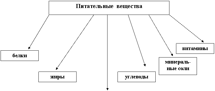 - показать разницу между понятиями «пищевые продукты» и «питательные вещества»;