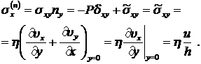 Рассмотрим движение двух несмешивающихся жидкостей. Очевидно, на поверхности раздела этих жидкостей скорости их в каждой точке поверхности раздела должны быть равны, т. е.