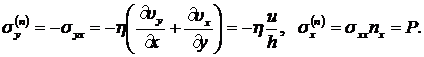 Прямыми и косвенными экспериментами показано, что вязкая жидкость “прилипает” к поверхности обтекаемого тела. Силы взаимодействия между поверхностными атомами обтекаемого тела и “прилипающими” к ним молекулами жидкости оказываются достаточными, чтобы последние двигались вместе с поверхностью обтекаемого тела. Поэтому на поверхности тела, обтекаемого вязкой жидкостью, в каждой точке поверхности должны быть равны нулю не только нормальные компоненты скорости жидкости и тела, но также и касательные компоненты. Следовательно, на поверхности обтекаемого тела в каждой точке в общем случае, когда поверхность перемещается со скоростью u, должно выполняться векторное равенство: