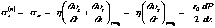 После интегрирования данного уравнения по r и выбора в качестве произвольной постоянной интегрирования давления жидкости
