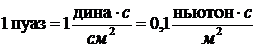 В системе CGS коэффициент динамической вязкости h определяют в пуазах. Один пуаз есть динамическая вязкость такой среды, в которой площадка в 1см2 одного слоя испытывает со стороны другого слоя силу в 1 дину при градиенте скорости между слоями в 1 см/с на 1 см длины.