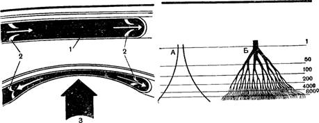 Рис. 66. Изменение ширины русла (А) в связи с разветвлением (Б) сосудистой системы.