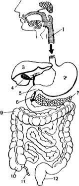 Рис. 80. Схема органов пищеварения: